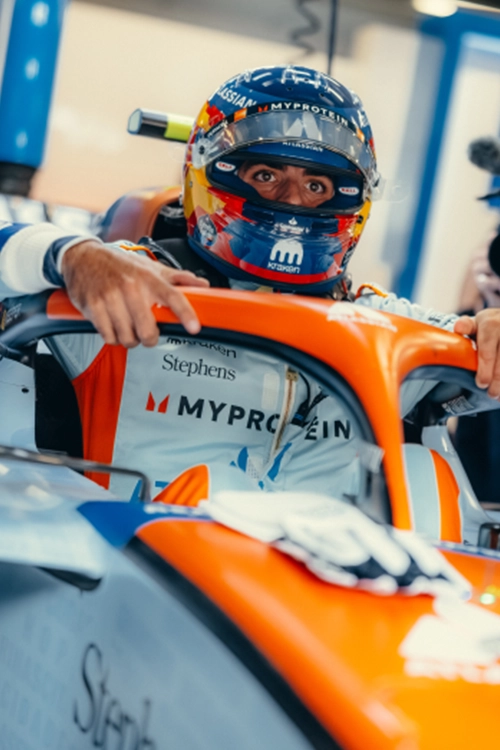 We invited Carlos Sainz down to visit our Driven by Words exhibition at the ROFGO collection—a treasure trove of iconic Gulf liveries, incredible racing moments, legendary memorabilia and more.